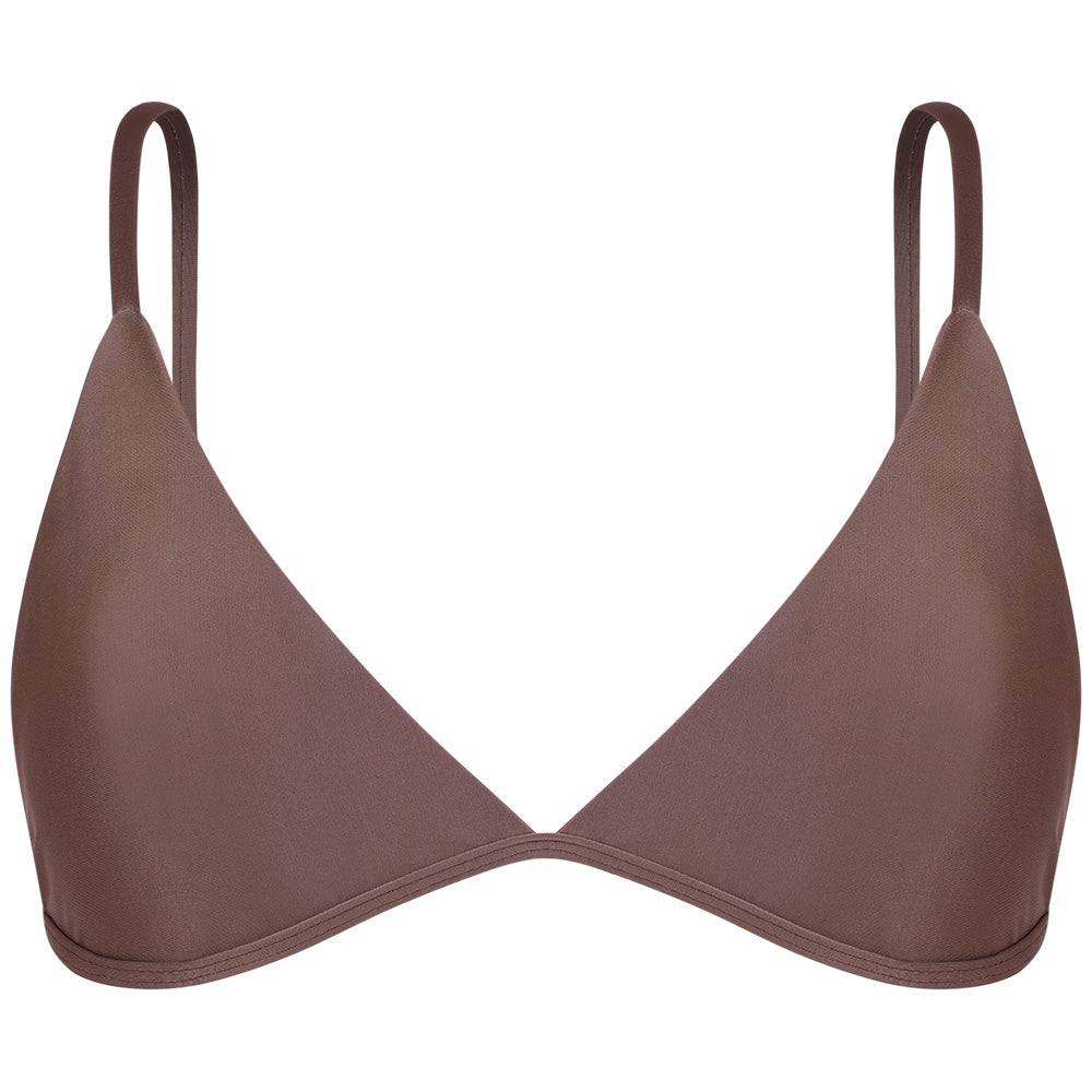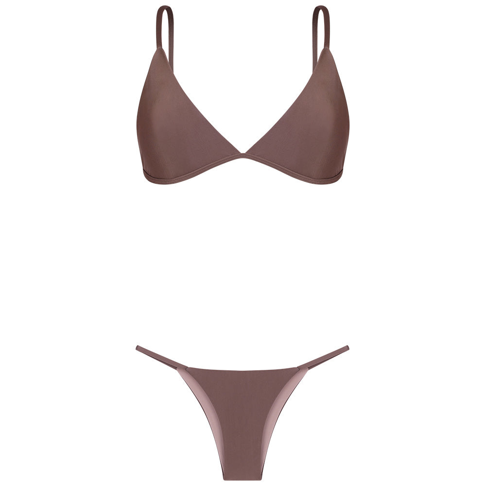 The top is a classic triangle design with adjustable straps, ensuring comfort and support. The minimalist design highlights its timeless elegance, while the adjustable back provides a perfect fit. The matching bottom features a simple and elegant cut with adjustable side ties that perfectly complement the top, creating a balanced and flattering look. Fully lined for added quality and comfort.