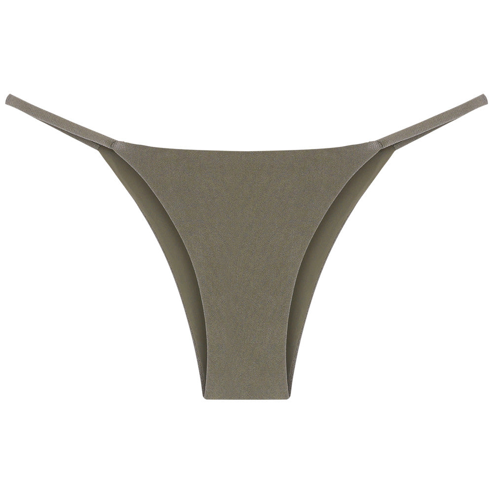 The top is a classic triangle design with adjustable straps, ensuring comfort and support. The minimalist design highlights its timeless elegance, while the adjustable back provides a perfect fit. The matching bottom features a simple and elegant cut with adjustable side ties that perfectly complement the top, creating a balanced and flattering look. Fully lined for added quality and comfort.