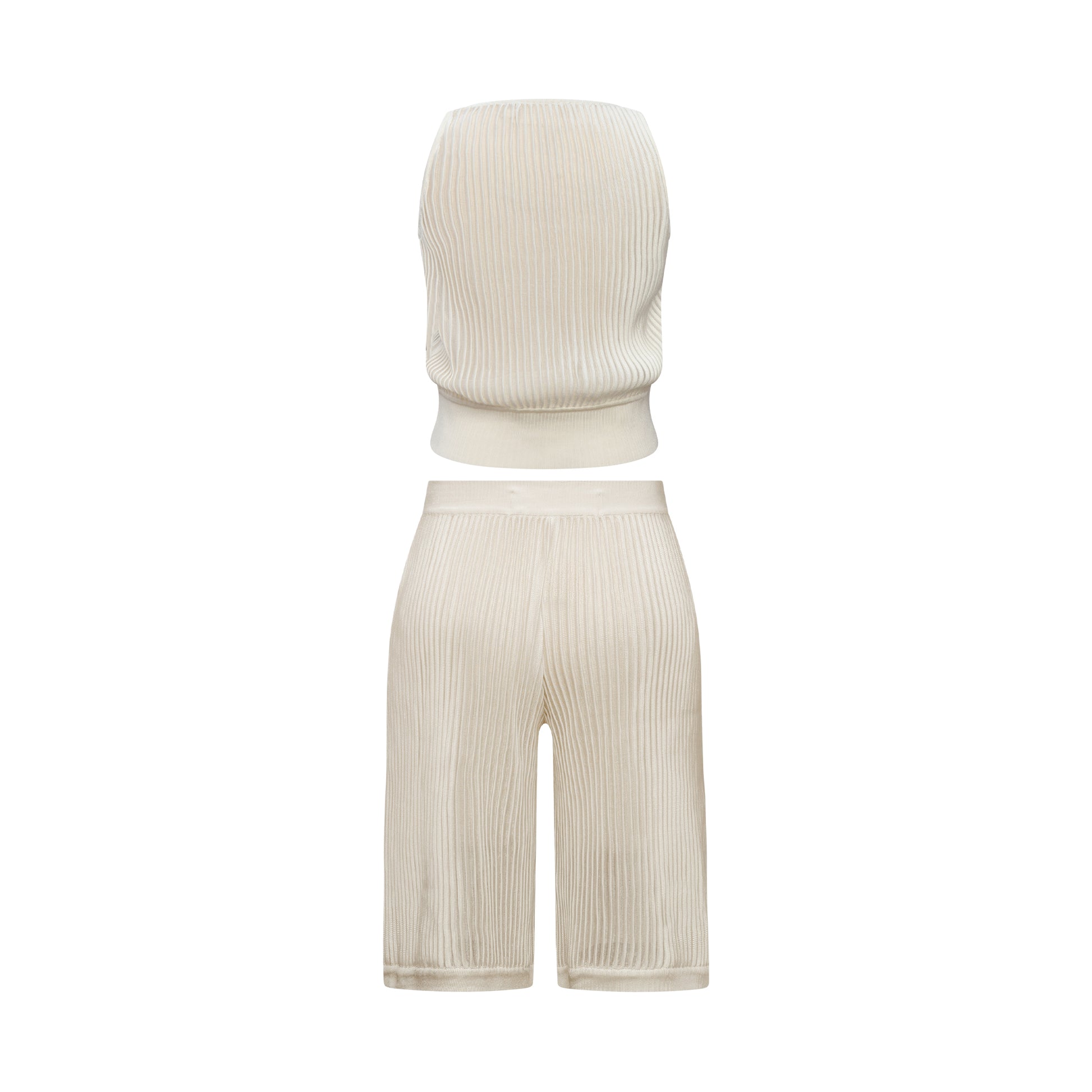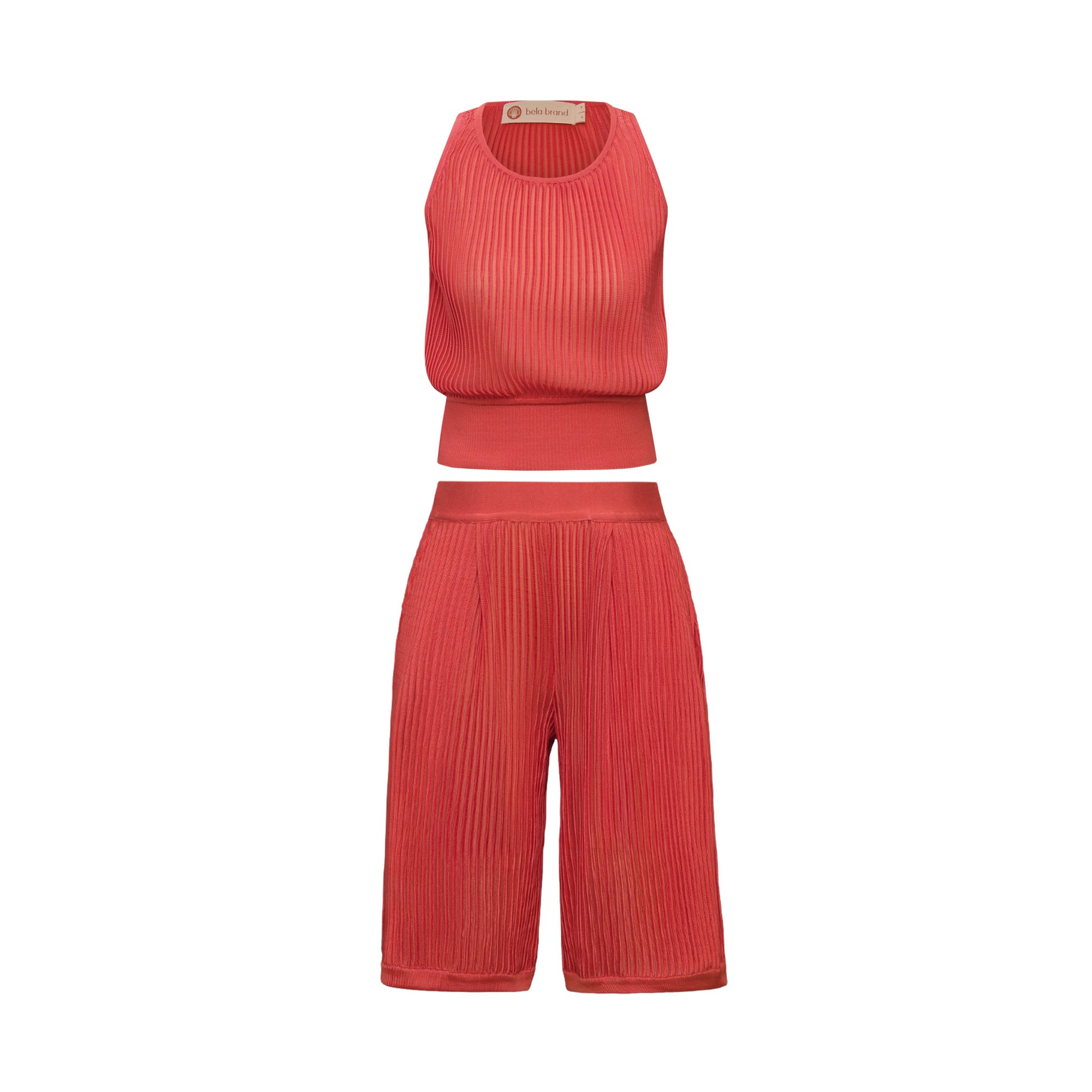 The Boldró Knit Set is the definition of sophisticated comfort. Crafted from textured knit with a subtle sheen and delicate transparency, it drapes fluidly around the body with a modern touch. The straight-cut tank with a rounded neckline is both practical and versatile, while the cropped wide-leg pants with pockets and a wide waistband ensure a flawless fit and effortless freedom of movement.