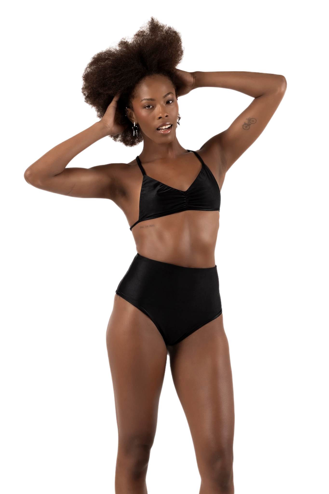 The basic black lycra hot pants are a practical and stylish choice for those seeking a versatile and discreet piece to wear under transparent garments. Bottom only.